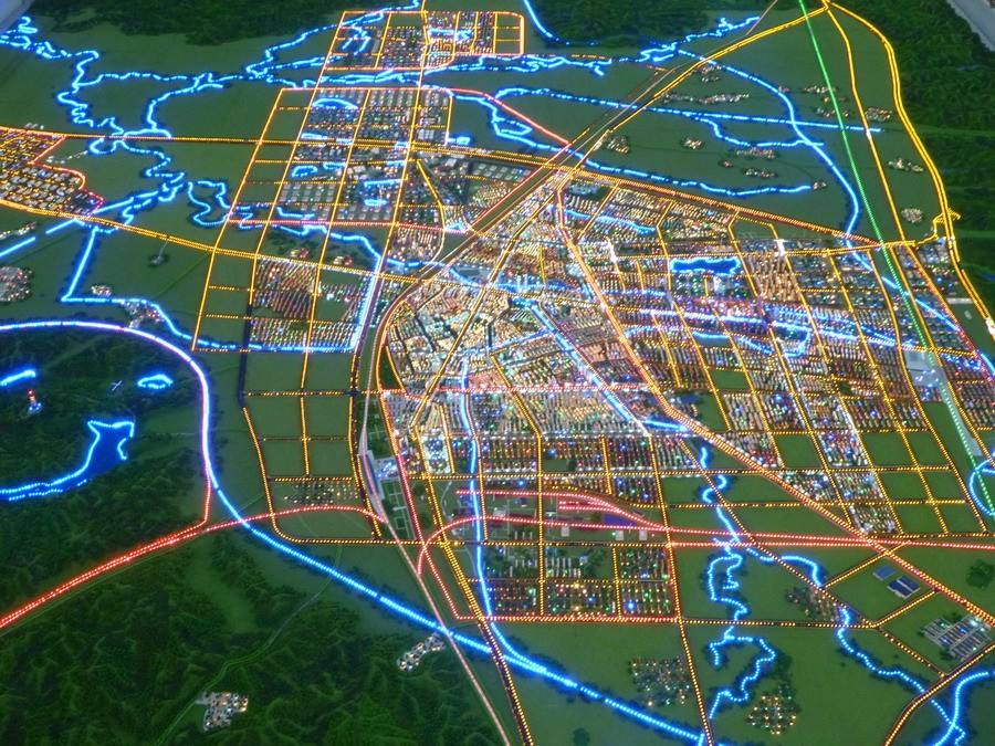 2、聲光電沙盤:是集成沙盤模型、模型特效、視頻演示、三維動畫、虛擬現實、展廳燈光、環境音效、觸摸屏一體機等,形成集視、聽、觸于一體的模型智能。