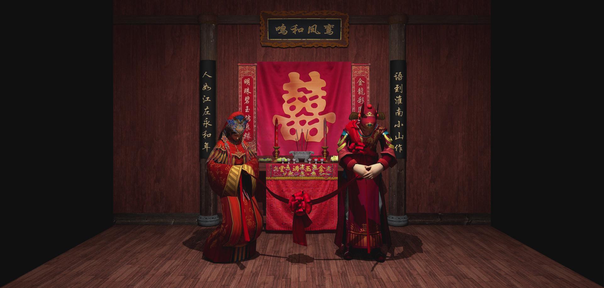 漢族先人認(rèn)為黃昏是吉時(shí),所以會(huì)在黃昏行娶妻之禮,因此夫妻結(jié)合的禮儀稱為“昏禮”,后來演化為婚禮。漢族人認(rèn)為紅是吉祥的象征,所以傳統(tǒng)婚禮習(xí)俗總以大紅色烘托著喜慶、熱烈的氣氛。吉祥、祝福、孝敬成為婚禮上的主旨,幾乎婚禮中的每一項(xiàng)禮儀都滲透著中國(guó)人的哲學(xué)思想。影片描述了漢族傳統(tǒng)婚俗拜堂過程,先是燃炮后是拜堂,體現(xiàn)了中國(guó)傳統(tǒng)文化的精髓。